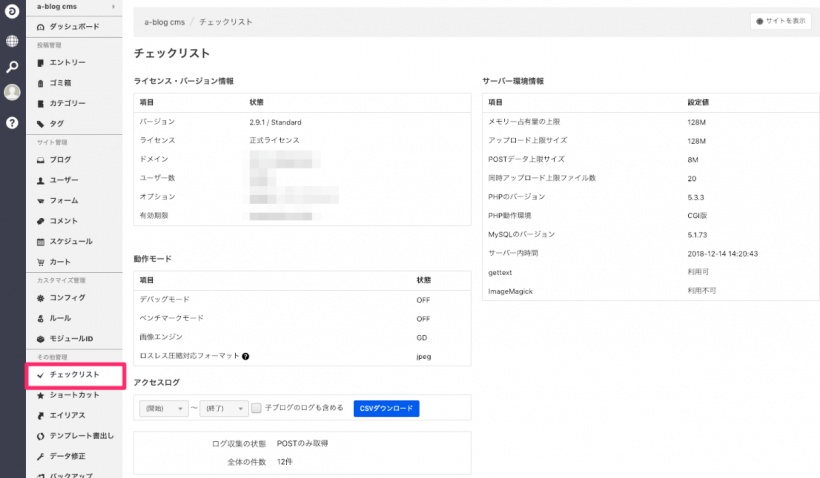 a-blog cmsには、管理画面に「チェックリスト」というメニューがあります。チェックリストでは、