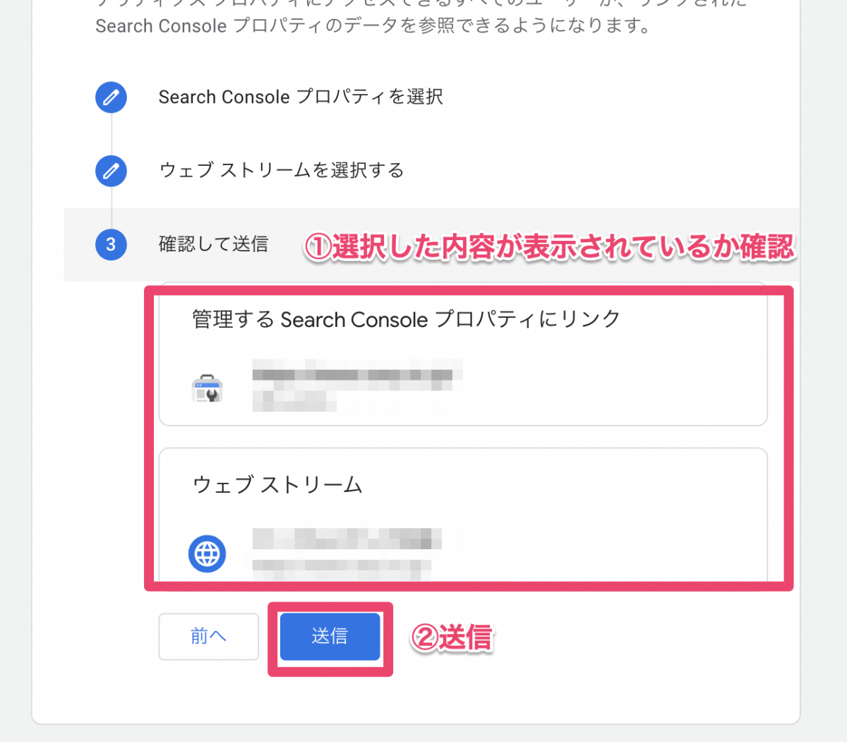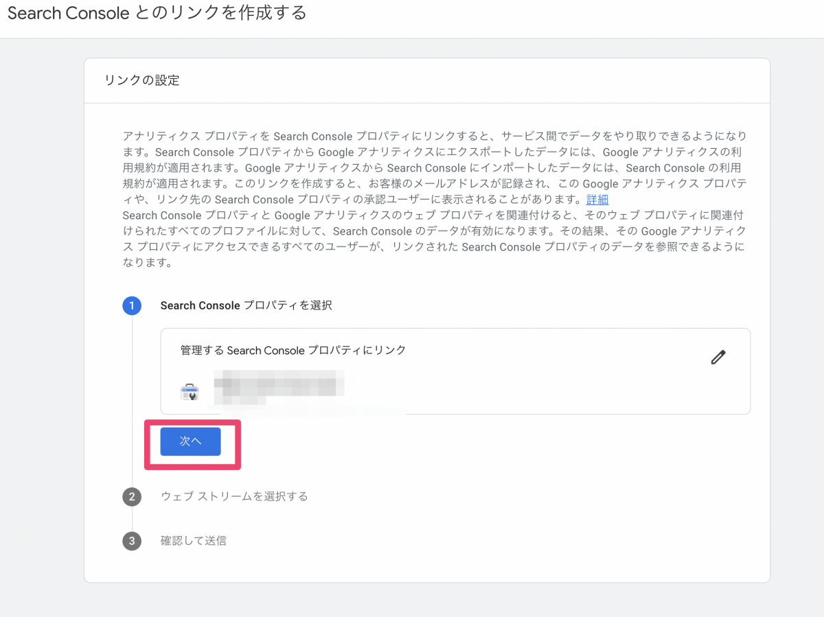 ・Search Console プロパティは、1 つのウェブデータ ストリームにのみリンクできます(同じ Search Console プロパティを 1 つのユニバーサル アナリティクス プロパティにリンクすることも可能です)。