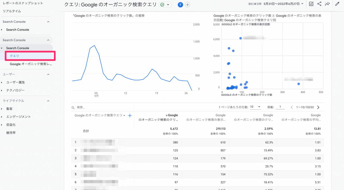 - GA4で連携したサーチコンソールのレポートの表示方法、データの見方