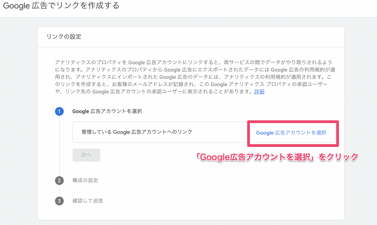 「Google広告アカウントを選択」をクリック