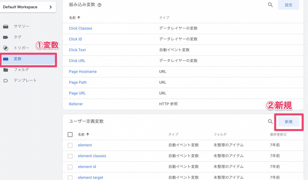 まずはユーザー定義変数を作成します。