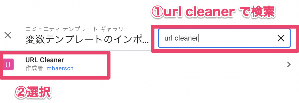 「URL Cleaner」というテンプレートが出てきたら、クリックして選択します。
