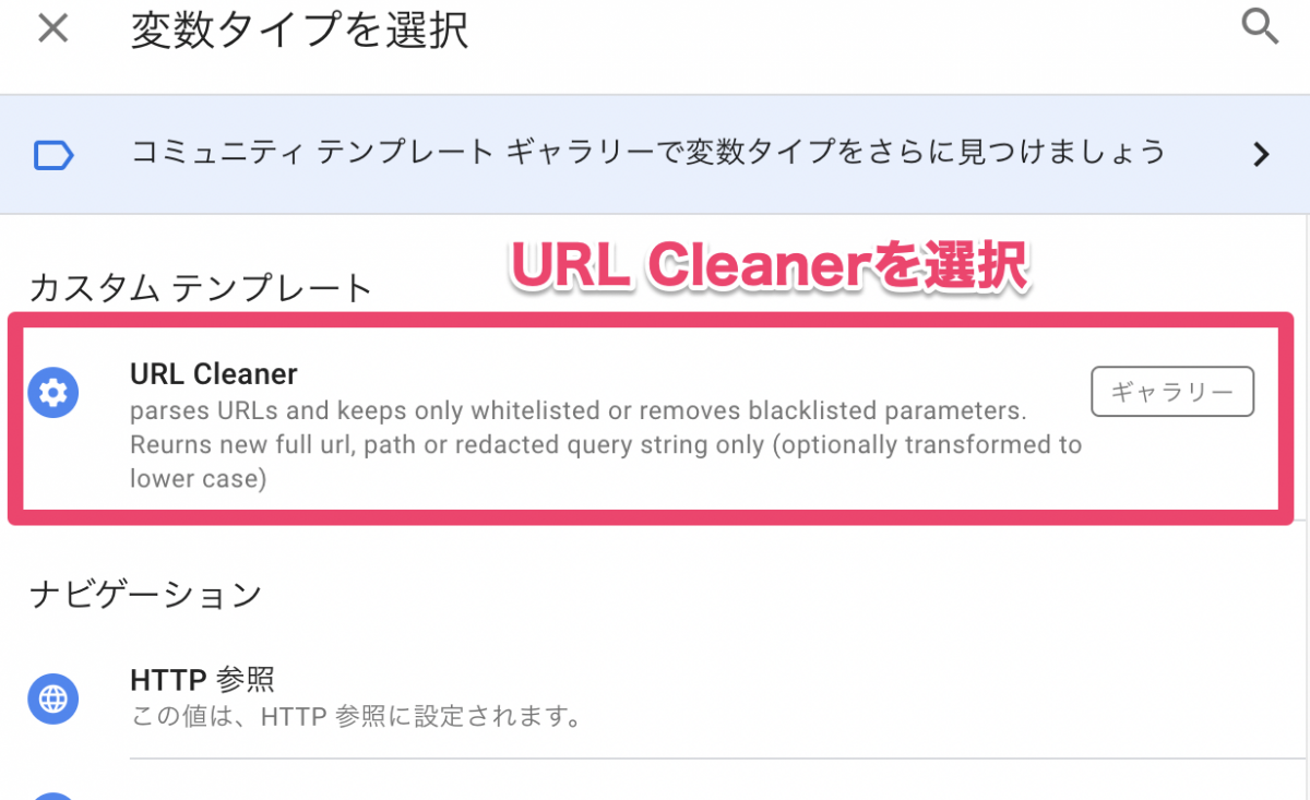 変数タイプ一覧に「URL Cleaner」が追加されたので、クリックして選択します。