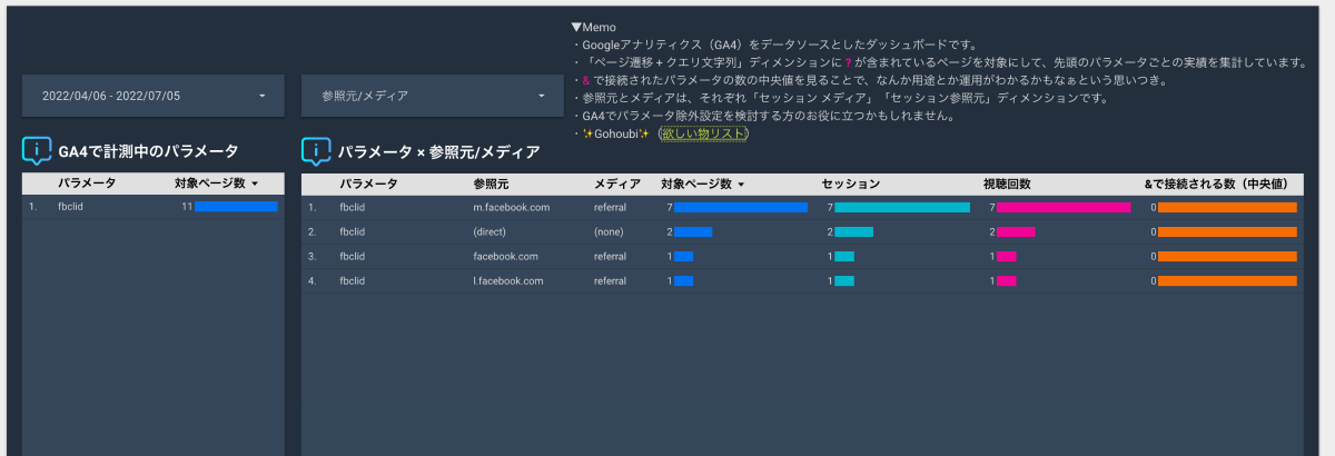 @RK_prvさんが、クエリパラメータを簡単に抽出するGoogleデータポータルを作成されています。